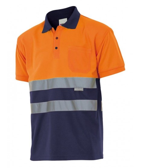 Polo bicolor manga corta - Azul marino/Naraja Fluor